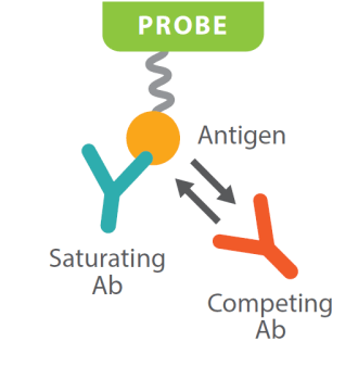 Epitope binning tests antibodies in a pairwise manner to determine whether the antibodies compete for the same binding region on an antigen. When many competitions between many antibodies are performed, a set of bins containing those antibodies that compete are created. Antibodies that compete and are in the same ‘bin’ often share a similar function. Choosing antibodies from different bins helps to find new biology and new IP space. Additionally, knowing the bin of an antibody can help predict biological function.